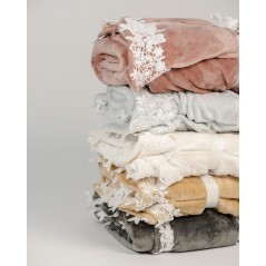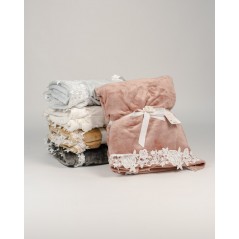 I plaid d'inverno non sono mai abbastanza, il Valtellina è un caldo plaid con un bordo all'uncinetto con delle rose in bianco. Molto delicato.