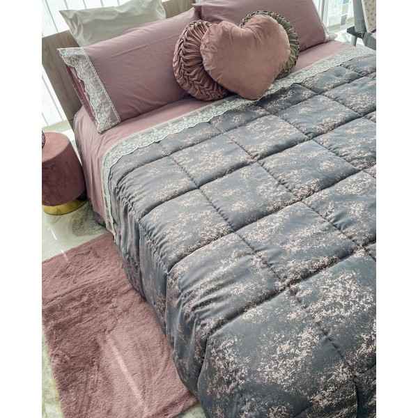 Trapunta Invernale Diana Coconuda Pink Matrimoniale In Tessuto Jacquardato Fondo Nero E Dettagli Rose Gold