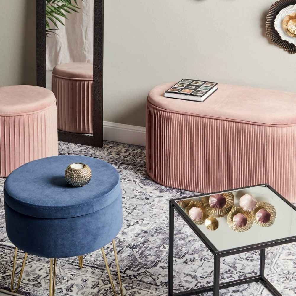 Pouf rotondo Leon con coperchio in velluto. Può essere usato per sistemare libri,telecomandi,riviste e molto altro. Il suo design è semplice...