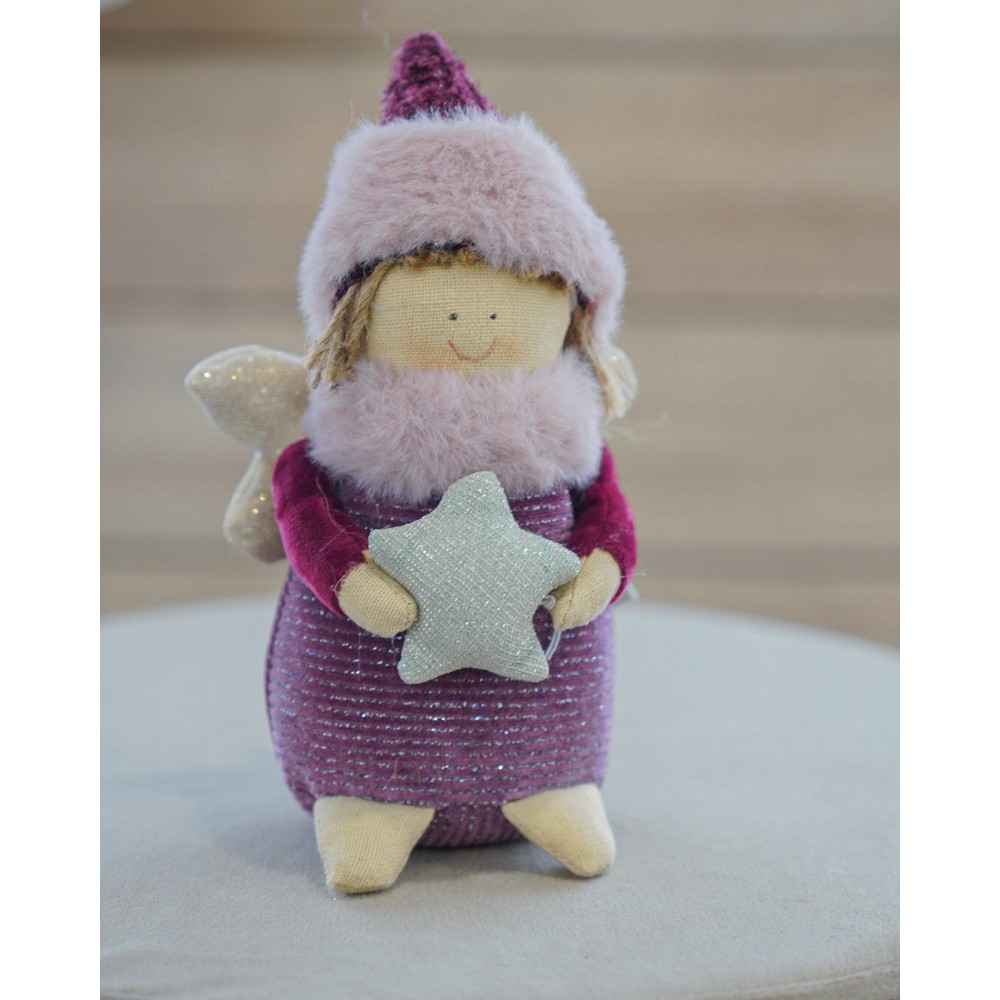 Graziosa bambolina in velluto Bordeaux con sciarpina, cappellino a cono e stellina glitterata.