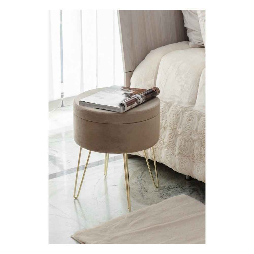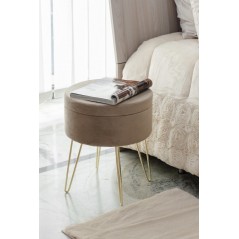 Questo sgabello. unico nel suo genere è destinato a non passare inosservato, con tre gambe oro, facilmente montabili (chiave in dotazione) e pouf contenitore. Questo oggetto può essere destinato a vari utilizzi, noi per esempio lo abbiamo usato al posto di un comodino, molto bello anche nella zona living, vicino al sofà o in camera da letto.