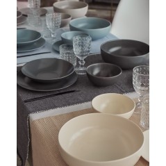 Il servizio Tatami fa parte del marchio Tognana, una ricca collezione per la tavola in stoneware effetto matt disponibile in 4 diversi colori. Finitura opaca unita al design minimal lo rendono perfetto per ricreare un ambiente piacevole ispirato allo stile Japandi che unisce tendenze giapponesi e scandinave.