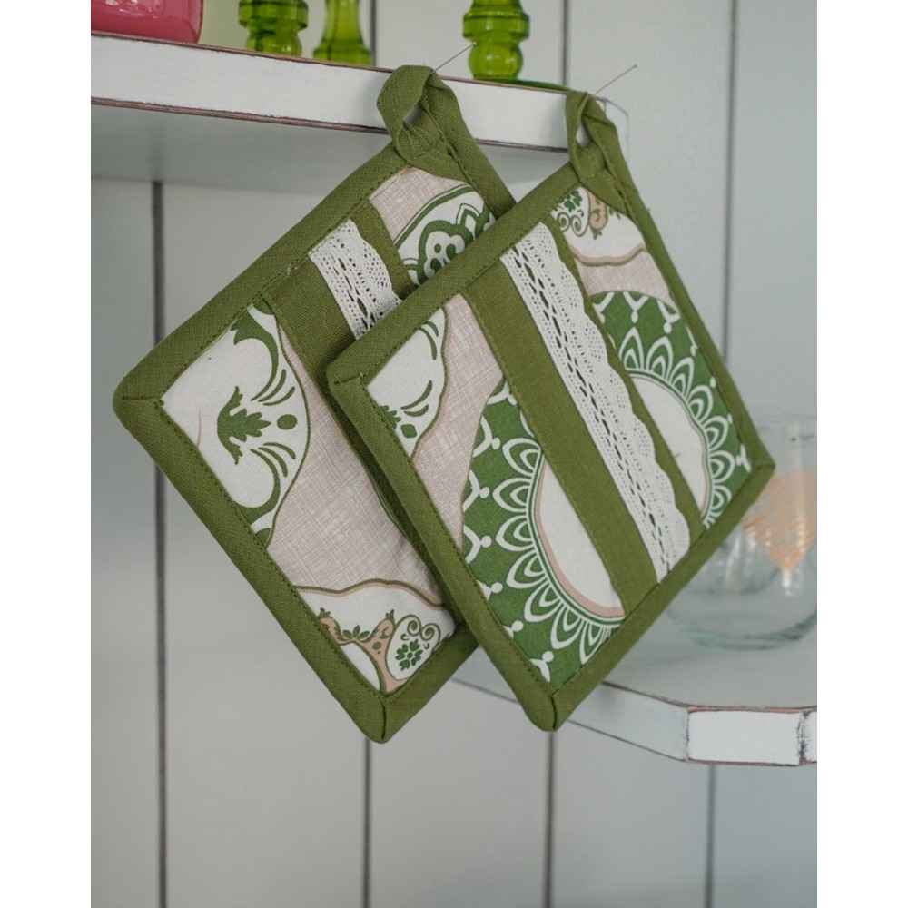 Presine Set 2 pezzi Ambra Verde in Cotone con Bordo Merletto
