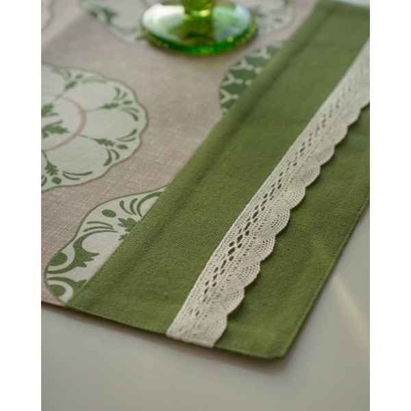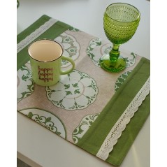 Tovaglietta Colazione Ambra Verde in Cotone con Bordo Merletto