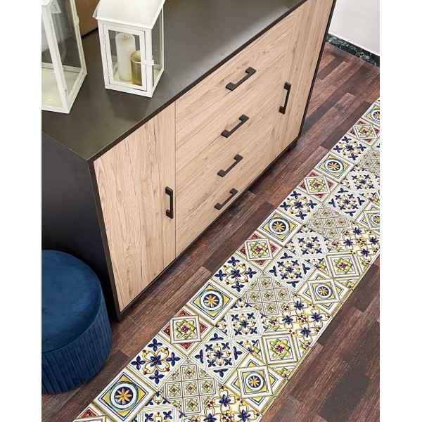 - Aderisce perfettamente al pavimento grazie al retro gommato antiscivolo.