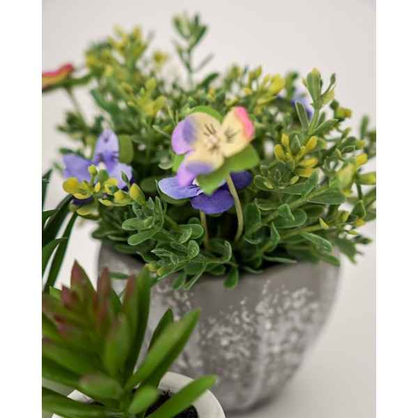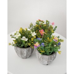 Vasetto Decorativo in Cemento con Fiori Piante Artificiali 3 colori