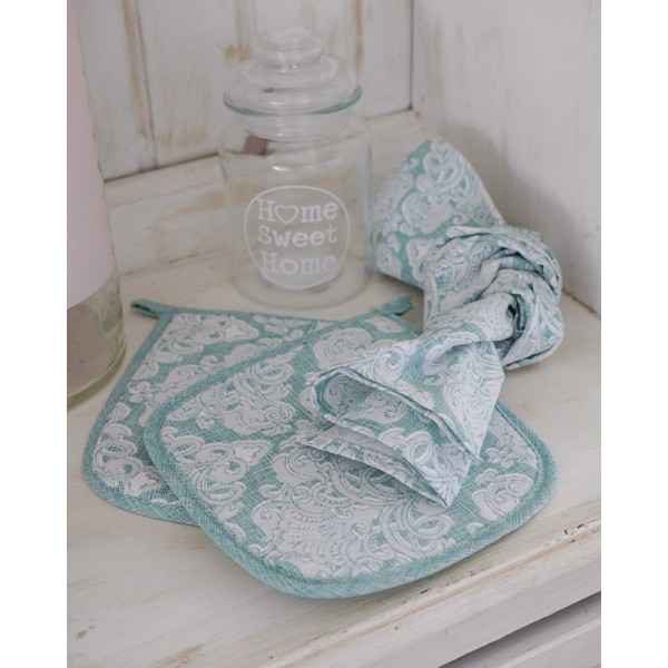 Dallo stile inconfondibile e senza tempo, questo Grazioso set strofinaccio e presine appartenente alla linea Sveva unisce Bellezza e praticità.