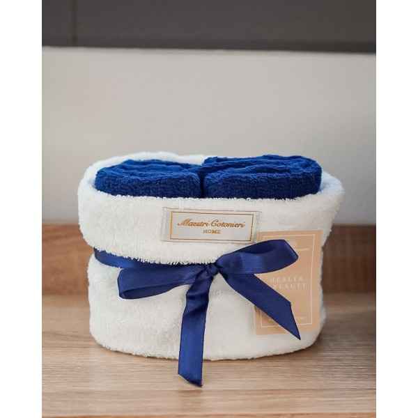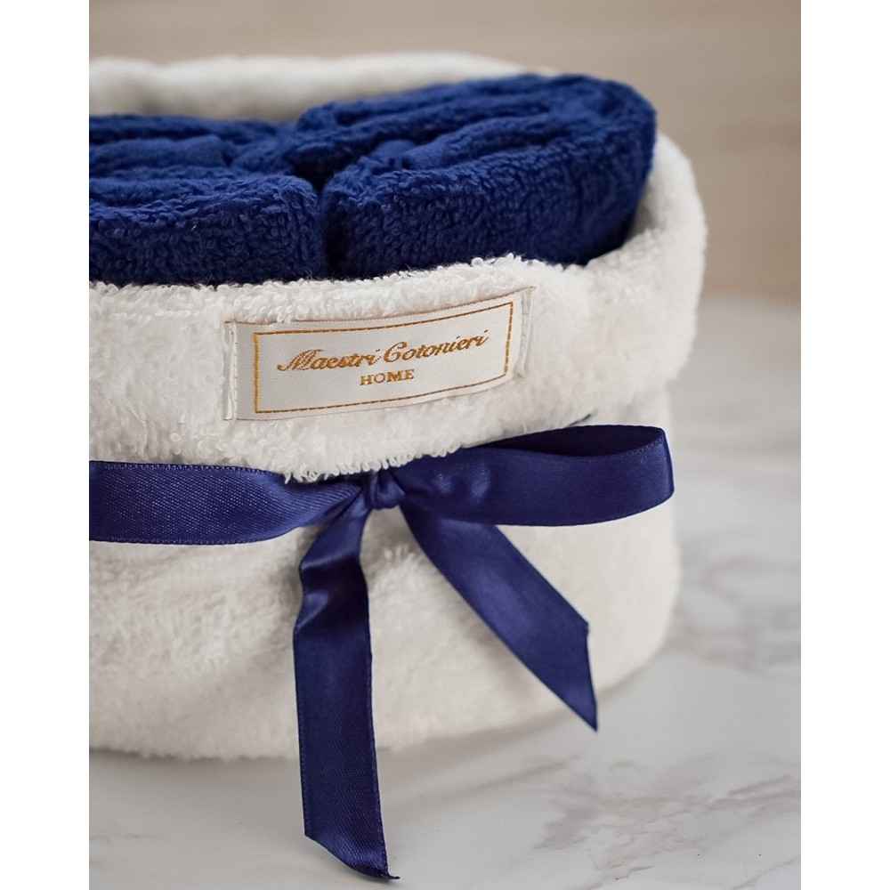 Cestino Lavette 4 pezzi Maestri Cotonieri Blu e Bianco con Grazioso Fiocco in Tono