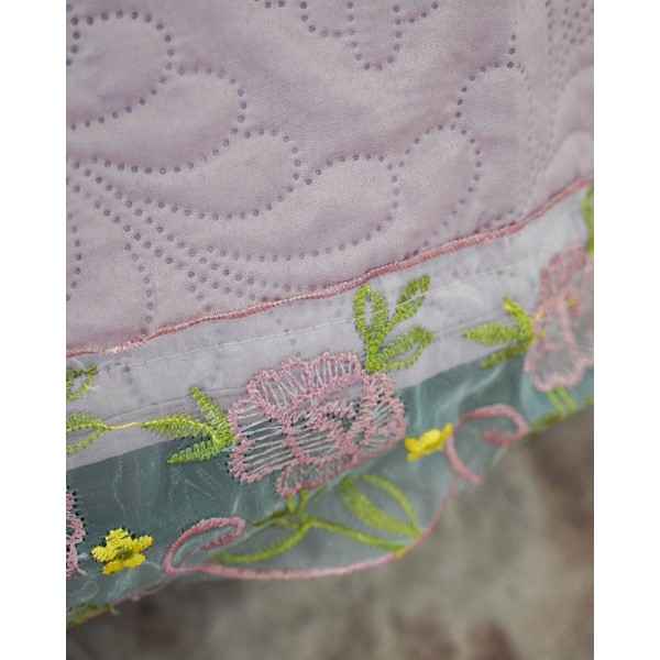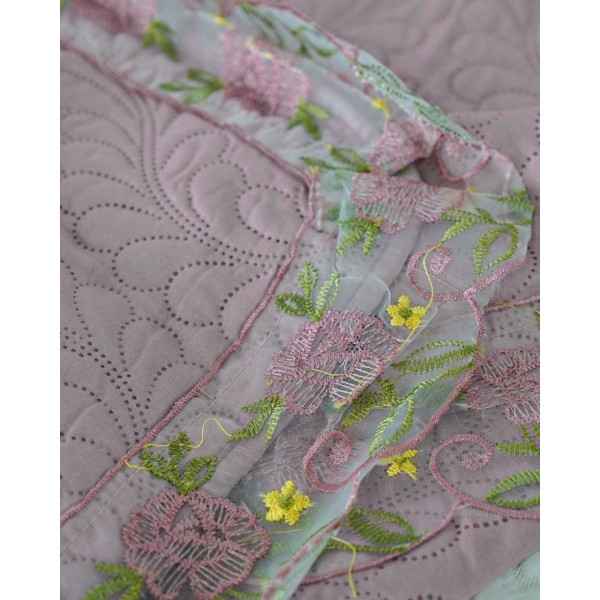Con il Trapuntino Melodie Organza che, grazie al bordo ricamato in organza con delicatissimi fiorellini, dona eleganza e un accenno di primavera.
