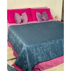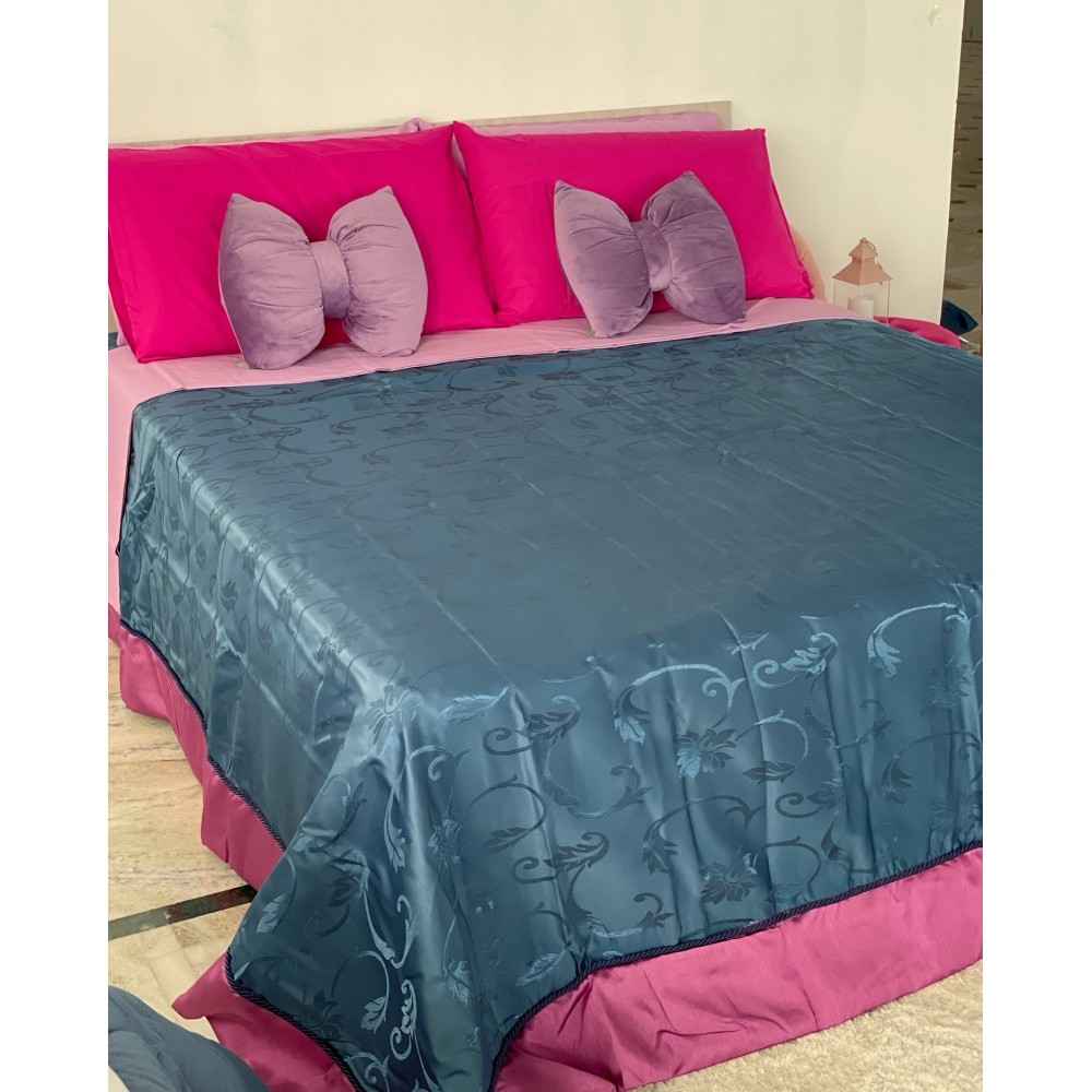 Copriletto Liliana in Raso Effetto Damasco con Cordoncino e Balza in Contrasto