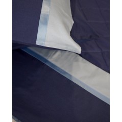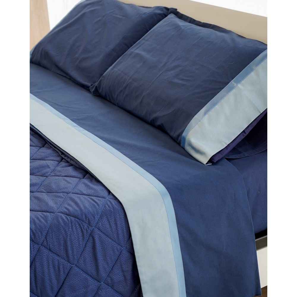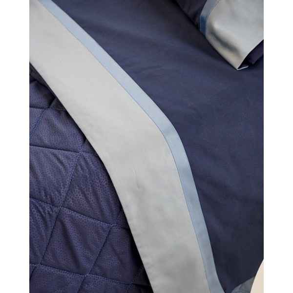 Completo Lenzuola Matrimoniali Perla 100% Cotone e Bordo in Raso Blu e Azzurro