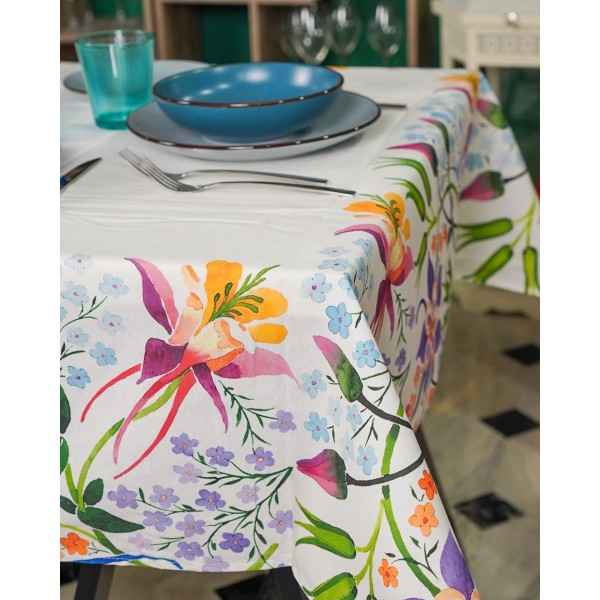 La tovaglia in stampa digitale con disegno piazzato centrato ha la caratteristica di avere la parte centrale bianca e tutta la parte laterale come una cornice che scenderà delicatamente ai lati della tovaglia riempendo di allegri colori e fantasie il tuo tavolo da pranzo.