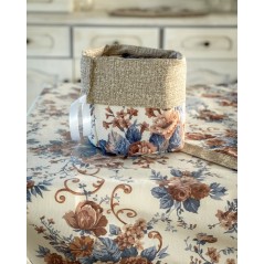 Elegante con il suo particolare fondo floreale con i toni del tortora e blu.