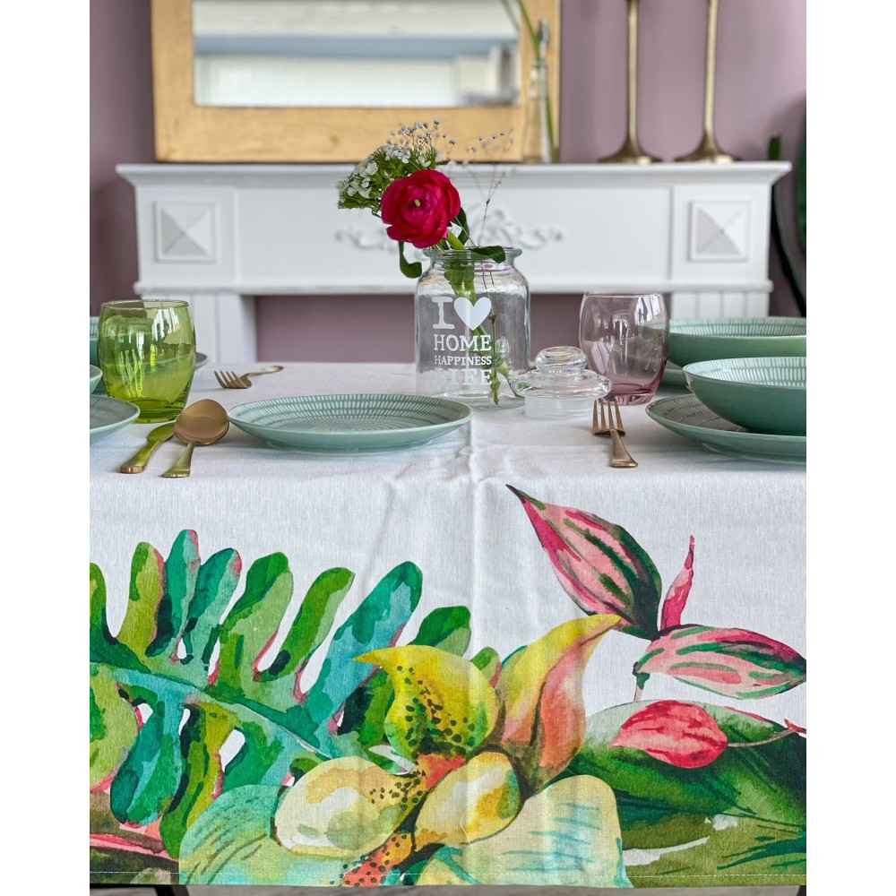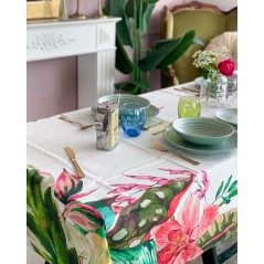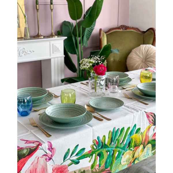 La tovaglia in stampa digitale con disegno piazzato centrato ha la caratteristica di avere la parte centrale bianca e tutta la parte laterale come una cornice che scenderà delicatamente ai lati della tovaglia riempendo di allegri colori e fantasie il tuo tavolo da pranzo.