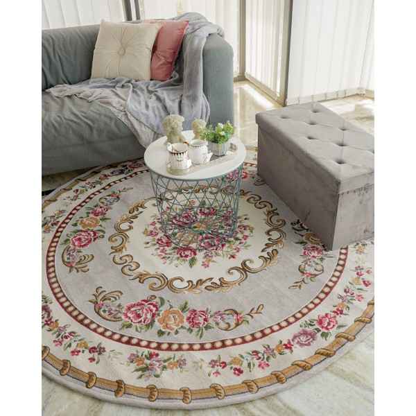 Tappeto Tondo con Motivo Floreale Fondo Antiscivolo Preziosa Home