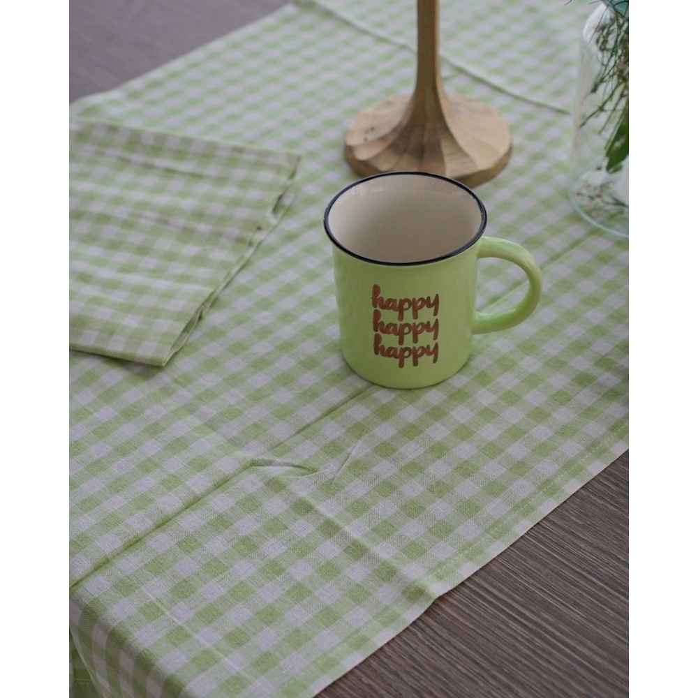 Runner Linea Magic in Cotone a Quadri Verdi Mela su Fondo Bianco e Fascione Finale