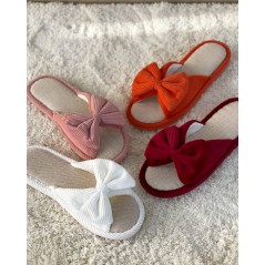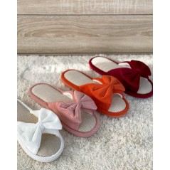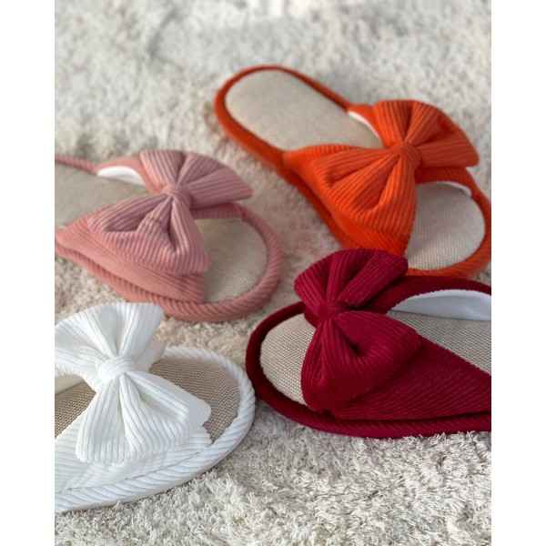 Ciabatte Ribbon Con Fiocco e Tessuto A Costine Con Suola Antiscivolo Alta Qualità
