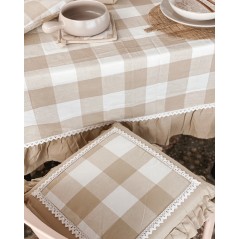 Un grazioso motivo a quadri arricchisce il cuscino con orlo finale arricciato.