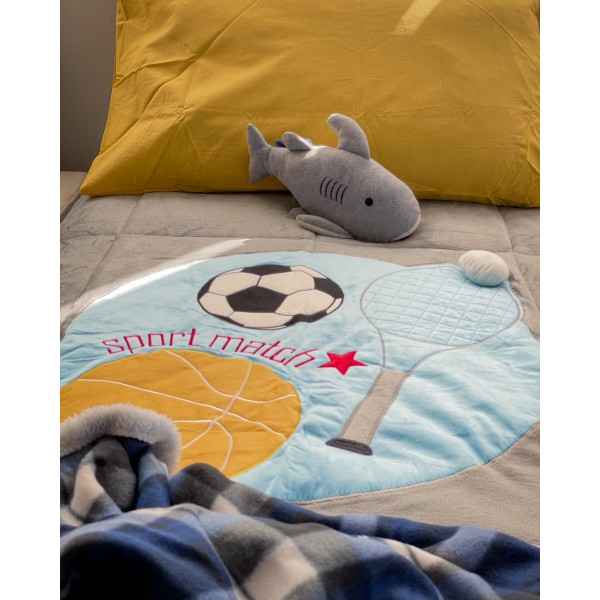 La trapunta Trentino Young. È pensata espressamente per i più piccoli. Bellissima l’applicazione centrale che caratterizza tutta la trapunta, in tessuto vellutato. La parte centrale presenta anche dei pon pon che diventano parte del disegno con molta originalità.