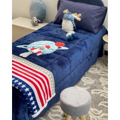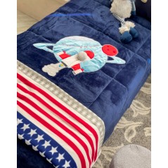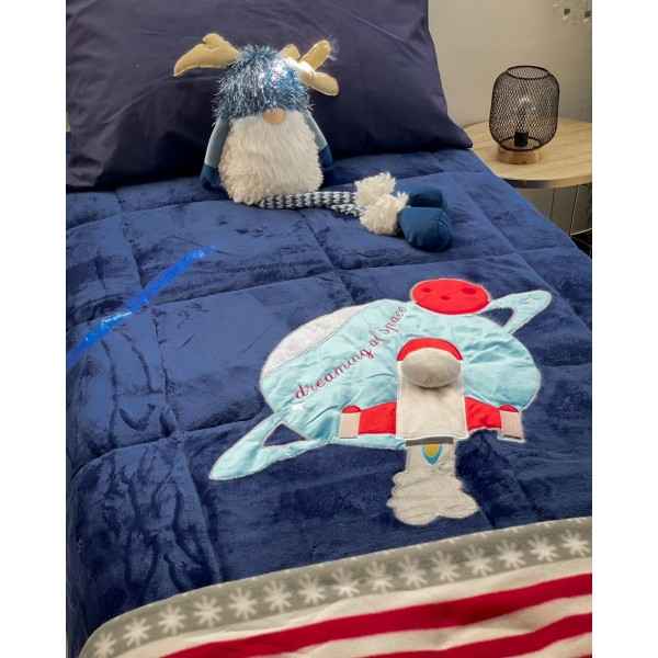 La trapunta Trentino Young. È pensata espressamente per i più piccoli. Bellissima l’applicazione centrale che caratterizza tutta la trapunta, in tessuto vellutato. La parte centrale presenta anche dei pon pon che diventano parte del disegno con molta originalità.