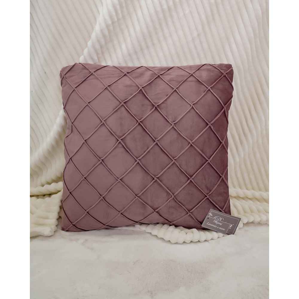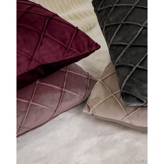 Questo cuscino in velluto è disponibile in varie colorazioni: Rosa, Tortora, Beige, Bordeaux e Grigio scuro. E' un prodotto Preziosa, venduto con imbottitura come in foto. E' lavorato a mano e presenta dei rombi sulla parte anteriore.