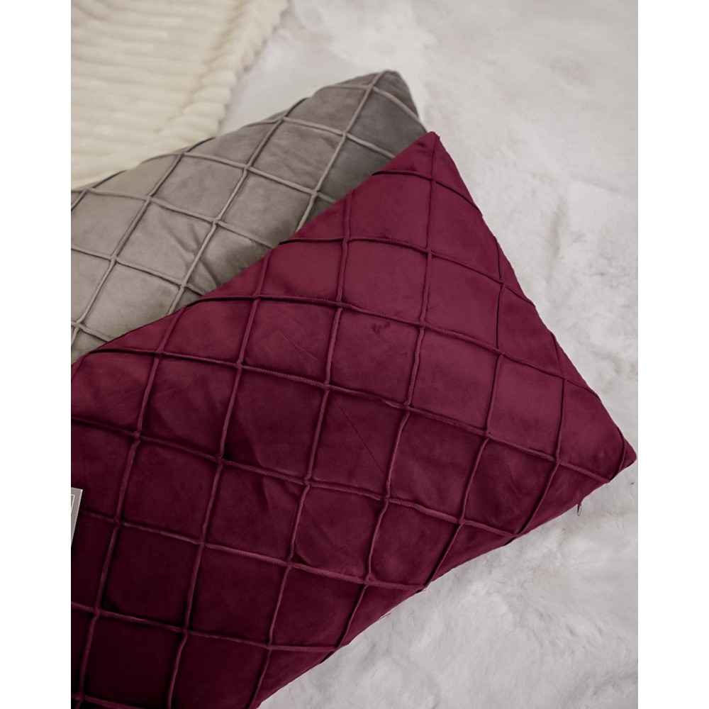 Questo cuscino in velluto è disponibile in varie colorazioni: Rosa, Tortora, Beige, Bordeaux e Grigio scuro. E' un prodotto Preziosa, venduto con imbottitura come in foto. E' lavorato a mano e presenta dei rombi sulla parte anteriore.