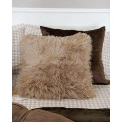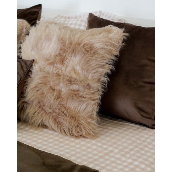 Cuscino arredo peloso e morbido. Imbottito come in foto. Sfoderabile. Parte anteriore con ecopelliccetta, parte posteriore in velate. Molto bello negli arredo delle stagioni più fredde. Abbinalo al suo tappeto per una combo perfetta.