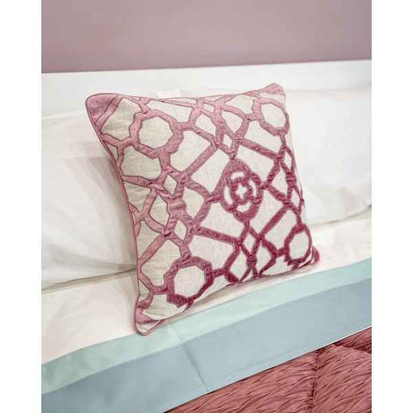 Cuscino Arredo Quadrato Rosa e Bianco Preziosa Luxury
