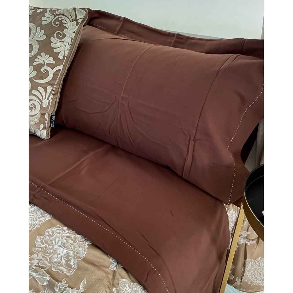 Questo completo letto matrimoniale è del marchio I Sogni. Morbido e caldo è realizzato in flanella ricamata, adatto per l'inverno. Nella colorazione del marrone. Il completo comprende il lenzuolo piano, lenzuolo con angoli e due federe a sacchetto.