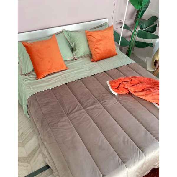 La trapunta Matrimoniale in velvet con traputa con linee verticali si adatta a molti tipi di arredamento ed ha una linea minimal ed elegante allo stesso tempo, dovuta al velvet.