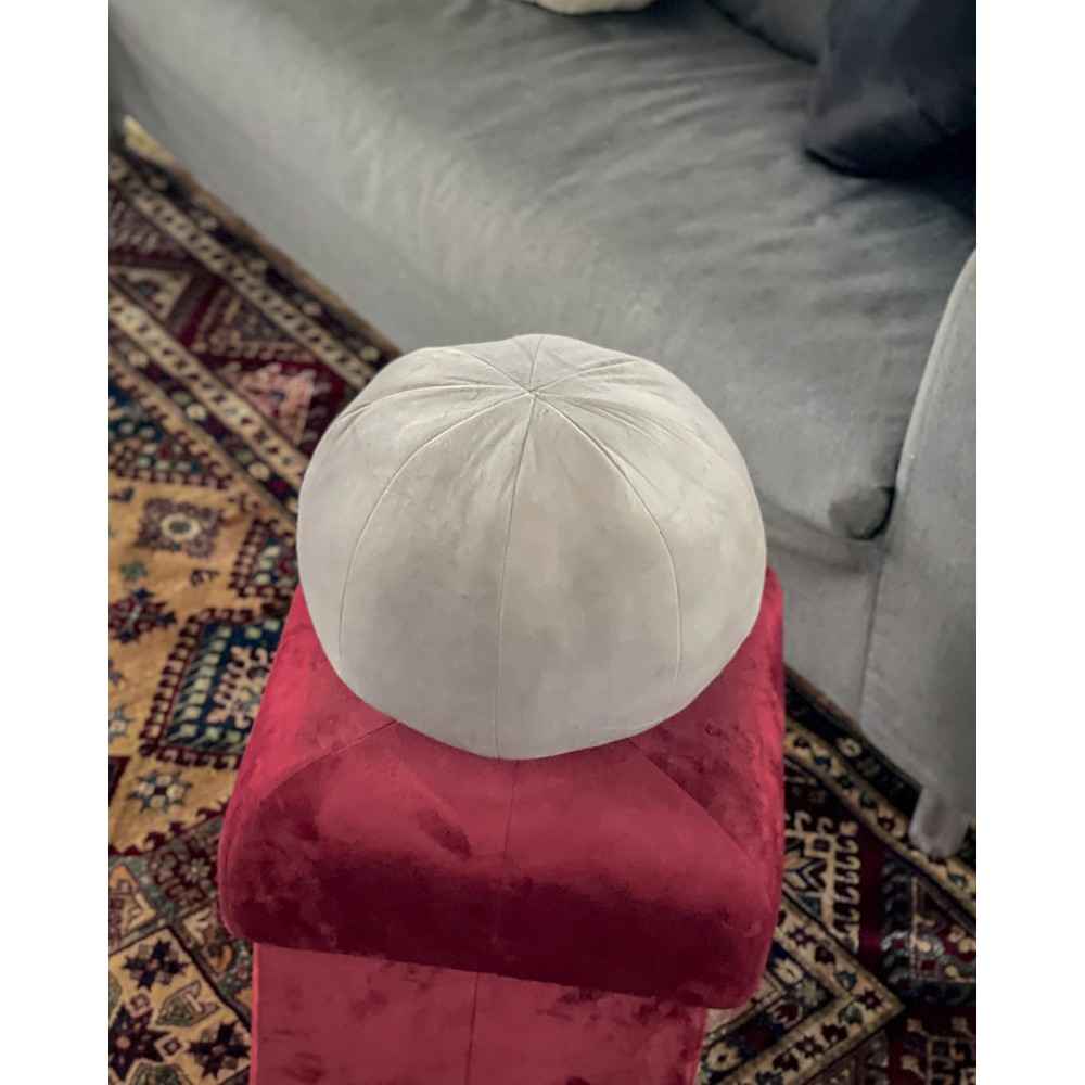 Il cuscino è di forma sferica, in velluto ed è provvisto di zip, dunque è sfoderabile.