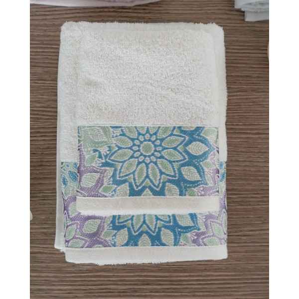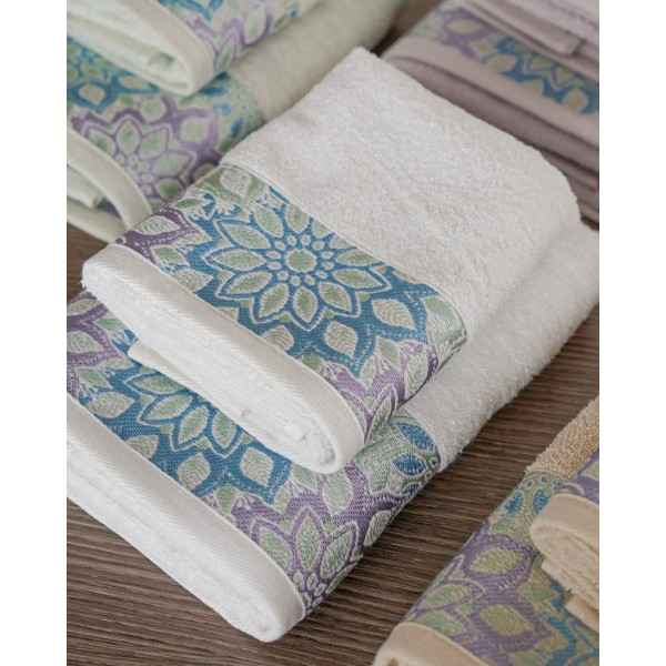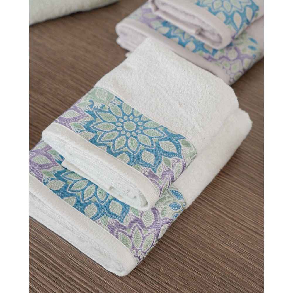 Set Asciugamani Flowers Viso e Ospite 100% Spugna di Cotone Vingi Ricami
