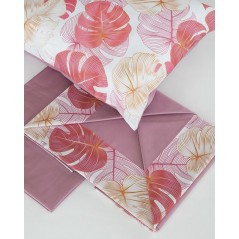 Il completo è in cotone e il set comprende: lenzuolo sopra, lenzuolo sotto e 2 federe a sacchetto.