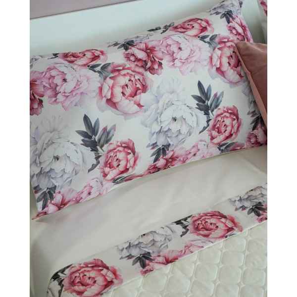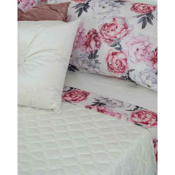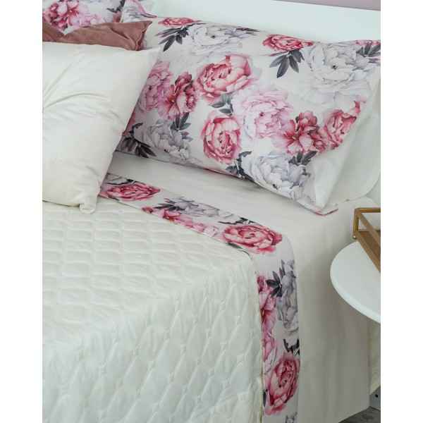 Il completo è in cotone e il set comprende: lenzuolo sopra, lenzuolo sotto e 2 federe a sacchetto.