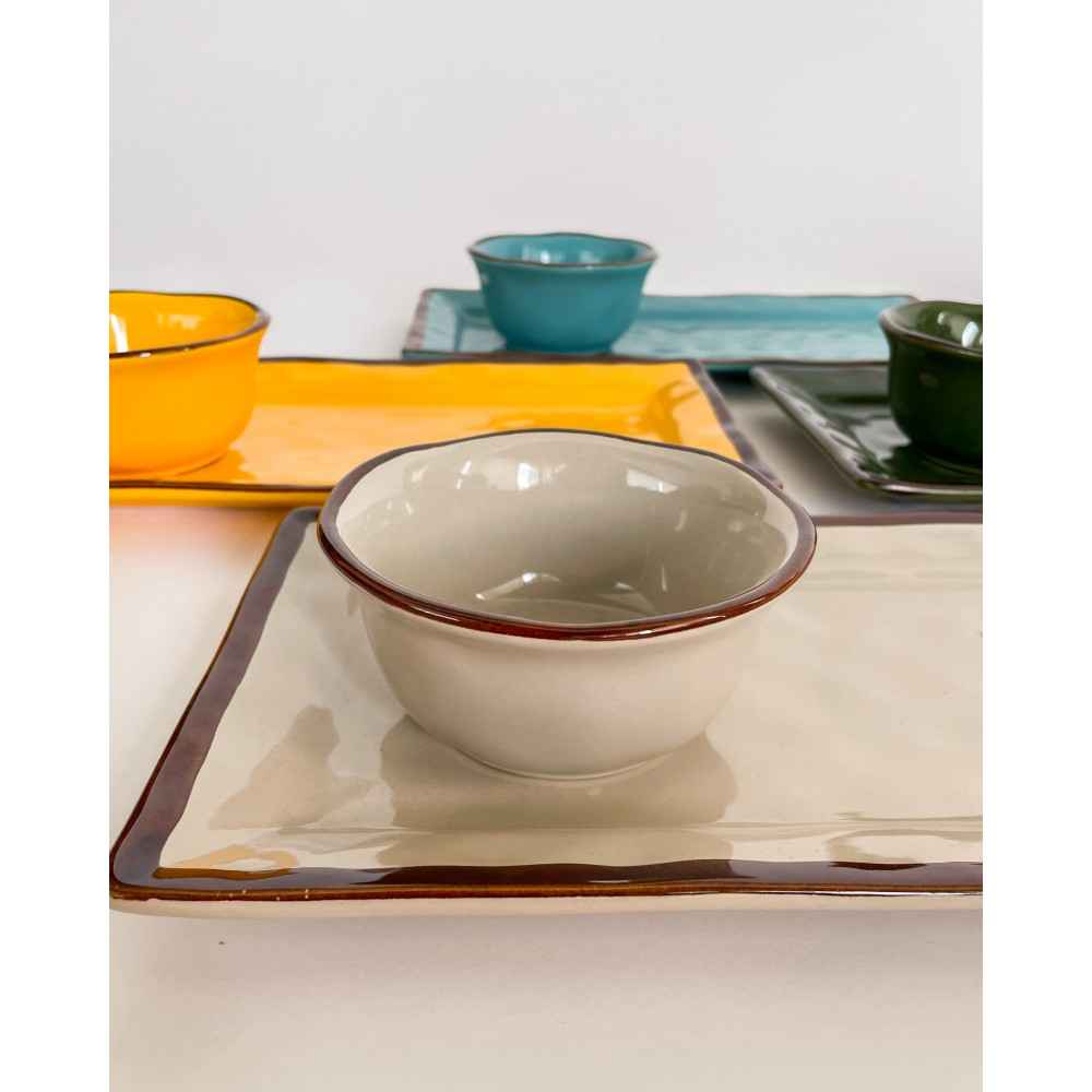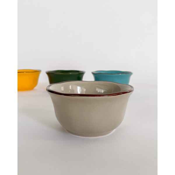 Ciotolina in ceramica martellata lucida, con bordino marrone. Abbinala ai vassoi e all'insalatiera per comporre un bellissimo set.