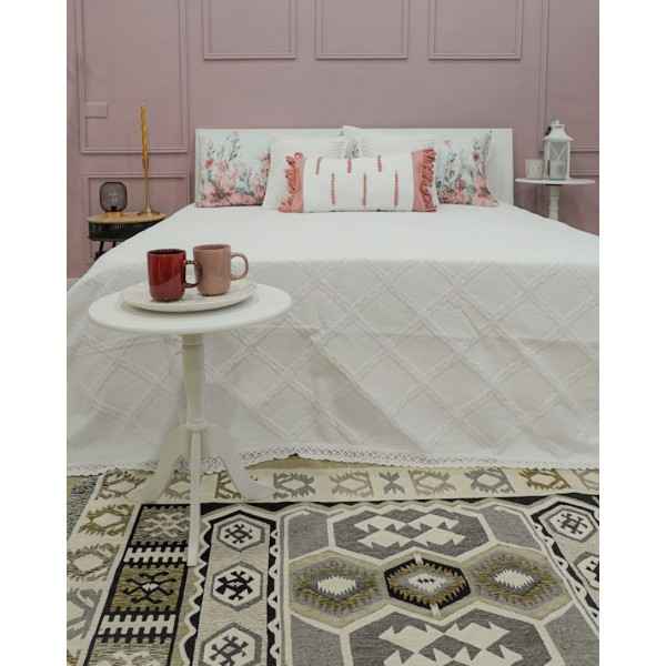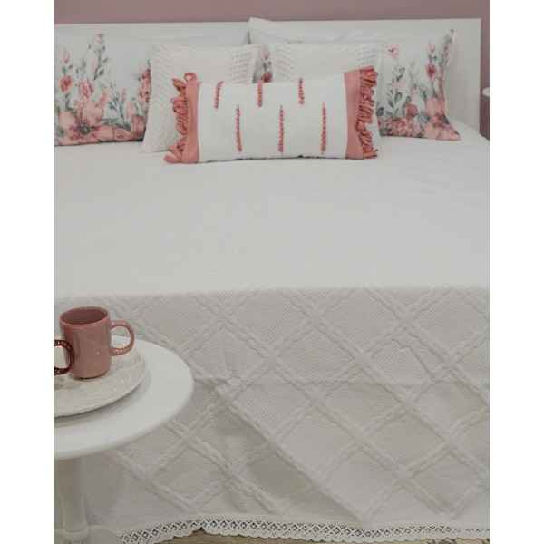 Copriletto Fust Matrimoniale Bianco Ricamato A Uncinetto