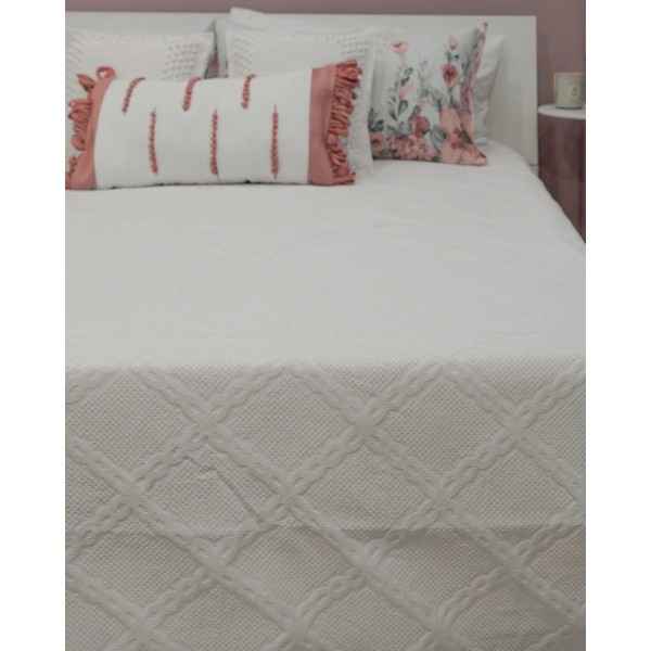 Per chi ama quel design moderno dal guato vintage, per chi adora lo stile eclettico e sa mixare: questo è il copriletto giusto. Bianco candido con una lavorazione a incrocio in riliero. Con passamaneria a uncinetto sui tre lati.