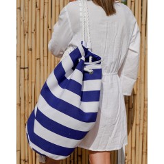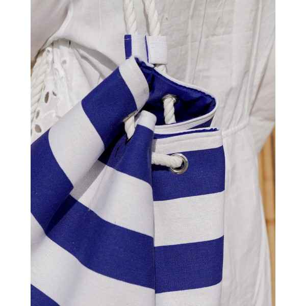 La sacca a righe è n classico dell'estate. Cinghie in corda, chiusura a sacchetto. All'interno, su un lato, è dotata di un piccolo taschino per inserire le cose più importanti.