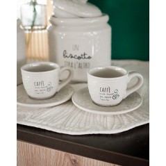 Il set comprende: due tazzine da caffè e due piattini color beige.