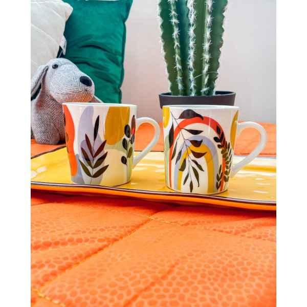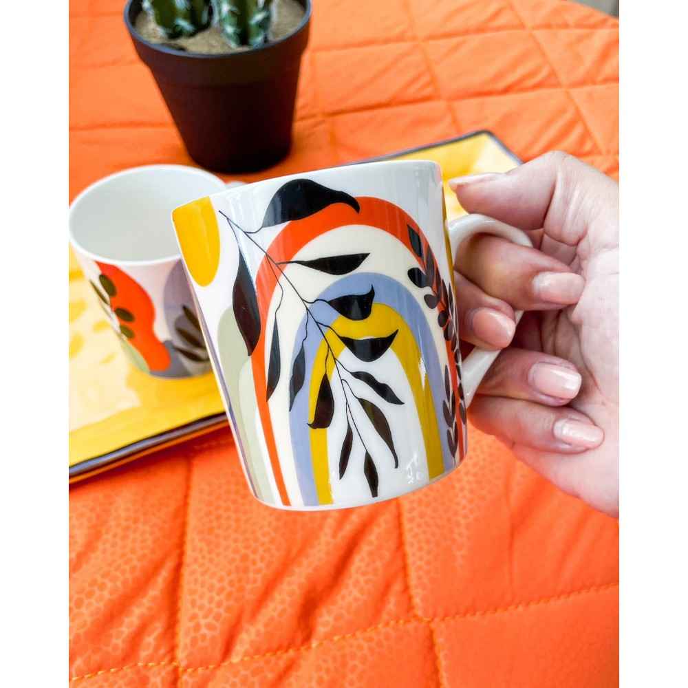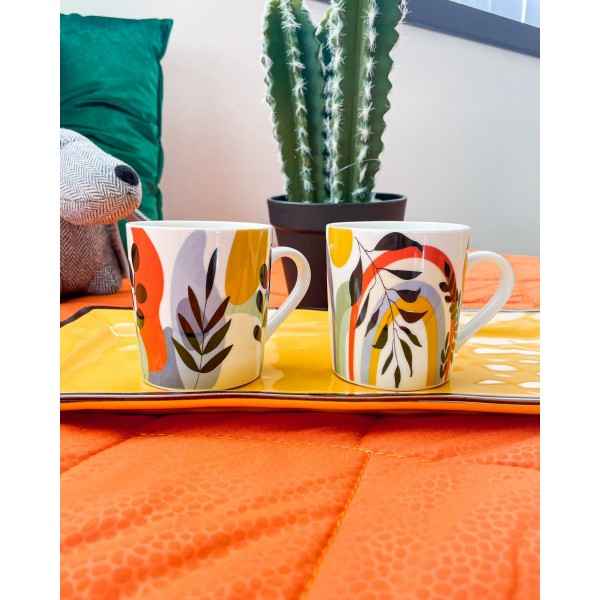 Tazza Mug Feuillage in ceramica, coloratissima. Fondo bianco mescolato a gemetrie e floreale. Ideale per i tuoi momenti di pausa. Le mug sono molto simili tra loro, differiscono lievemente nel disegno, per cui quello che vi arriva potrebbe essere non esattamente fedele alla foto.