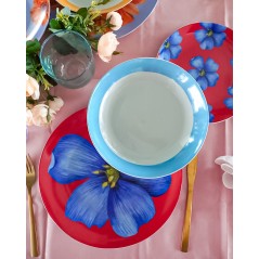Questo Servizio Tavola in Porcellana è decorato con motivi floreali declinati a contrasto l'uno con l’altro, molto particolare, per chi ama le mise en place fuori dall’ordinario. È adatto al lavaggio in lavastoviglie e all'uso nel microonde.