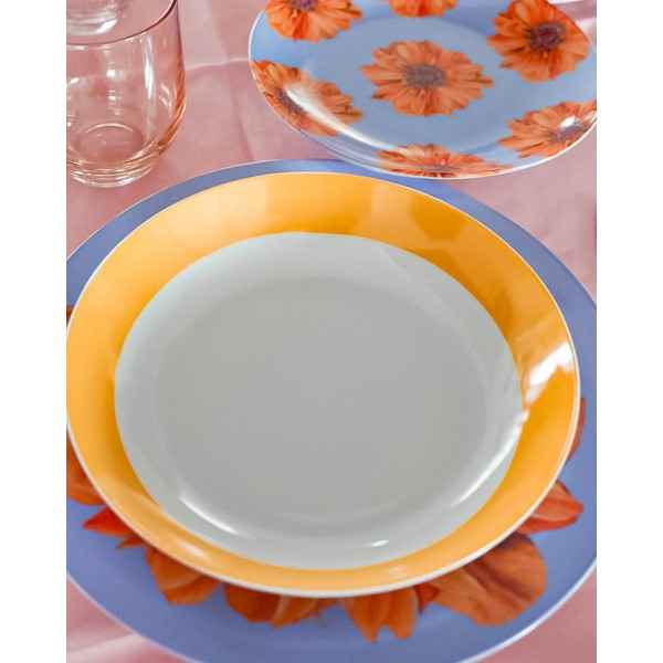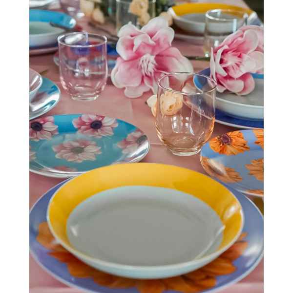 Servizio Tavola della Surreal Spring, composto da 18 pezzi: 6 piatti piani ø 27,6 cm, 6 piatti fondi ø 20,6 cm e 6 piatti dessert ø 20 cm.