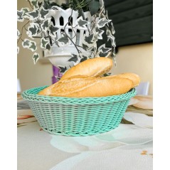 Colorato cestino portapane effetto vimini, in pvc, facilmente lavabile. Disponibile 3 colori che porteranno allegria in tavola: arancio, tiffany e giallo.
