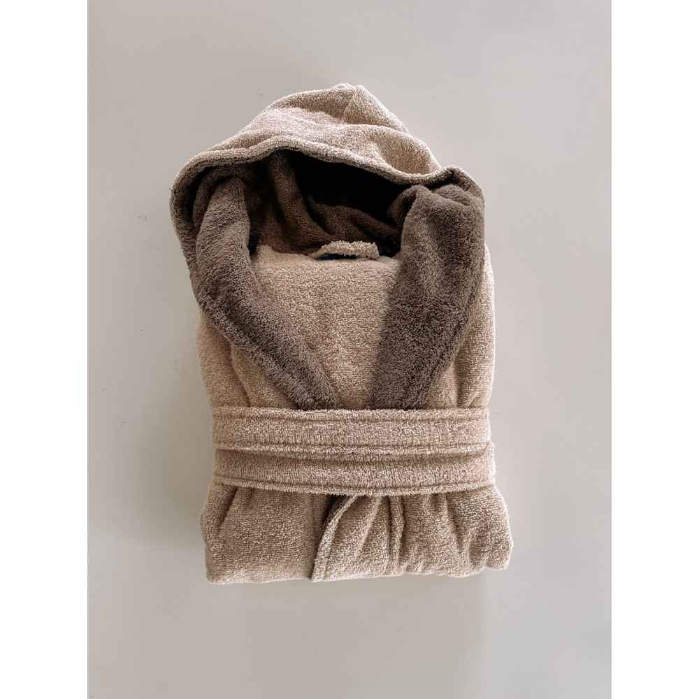 Dotato di cintura con passanti, due comodi tasconi nell parte anteriore e cappuccio.