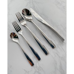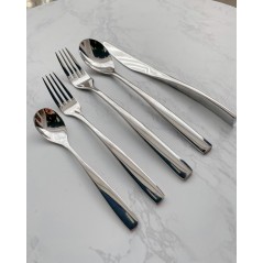 Il servizio è formato da 12 coltelli, 12 forchette, 12 forchette frutta, 12 cucchiaini e 12 cucchiai.