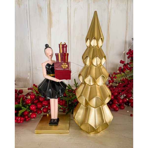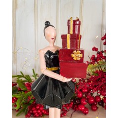 Lady Origami Nera Con Pacchi Rossi Decorazione Natale