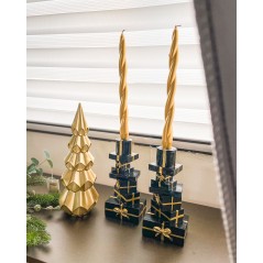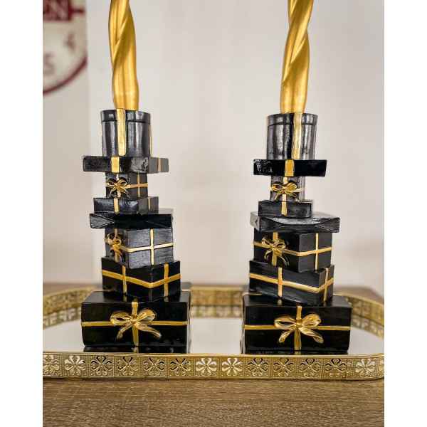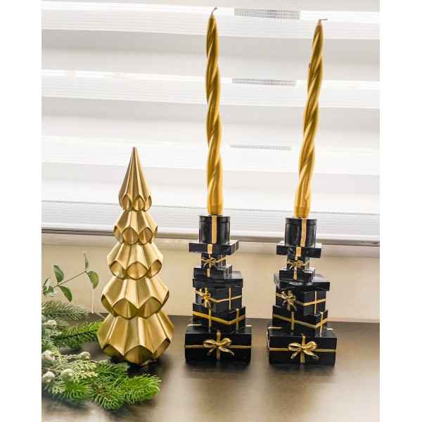 Set Due Porta Candele Pacchi Regalo Nero e Oro Origami Decorazione Natale