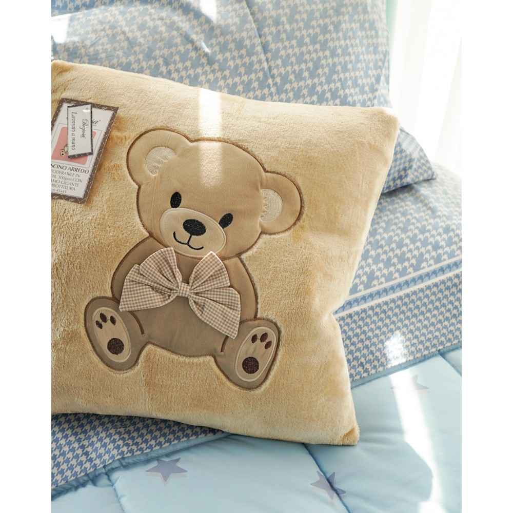 I cuscini Teddy sono dei tenerissimi cuscini arredo in velluto, con zip, sfoderatili, lavorati a mano. Con l'orsetto nella parte centrale con il fiocchetto che richiama il colore del cuscino.