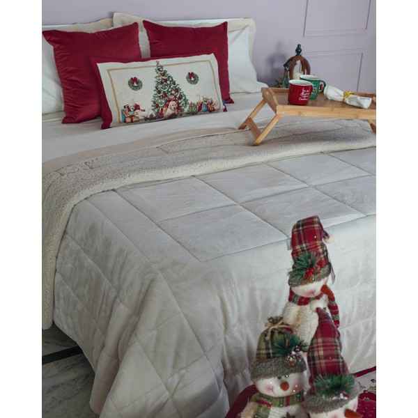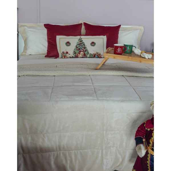 La trapunta Merinos è per i freddolosi, per chi ama farsi avvolgere da un caldo abbraccio durante la notte. Velluto fuori pelliccia dentro. Trapuntatura a quadri con angoli stondati.