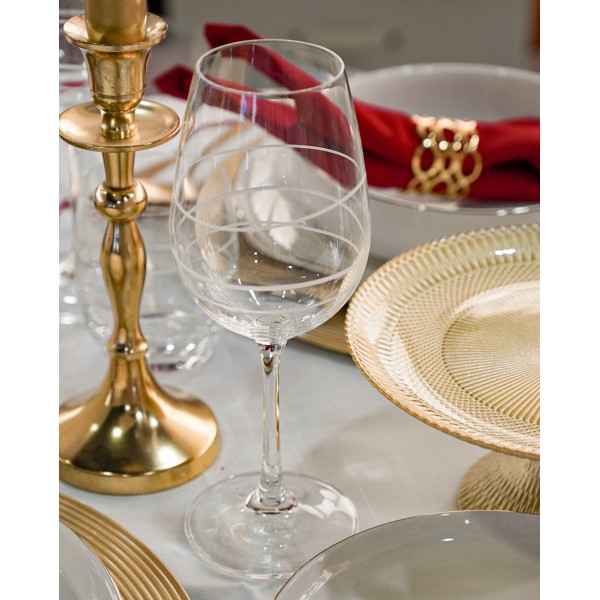 Questi calici sono prodotti in pregiato cristallo di Boemia, hanno un design davvero elegante, reso ancora più ricco dal motivo decorativo che disegna delle onde sulla superficie. Perfetti per la tavola di ogni giorno come per le occasioni più formali, si abbinano ai bicchieri della stessa linea, anch’essi con l’elegante decoro. Sono pratici perché vanno anche in lavastoviglie, utilizzando un programma delicato specifico per il lavaggio dei bicchieri.